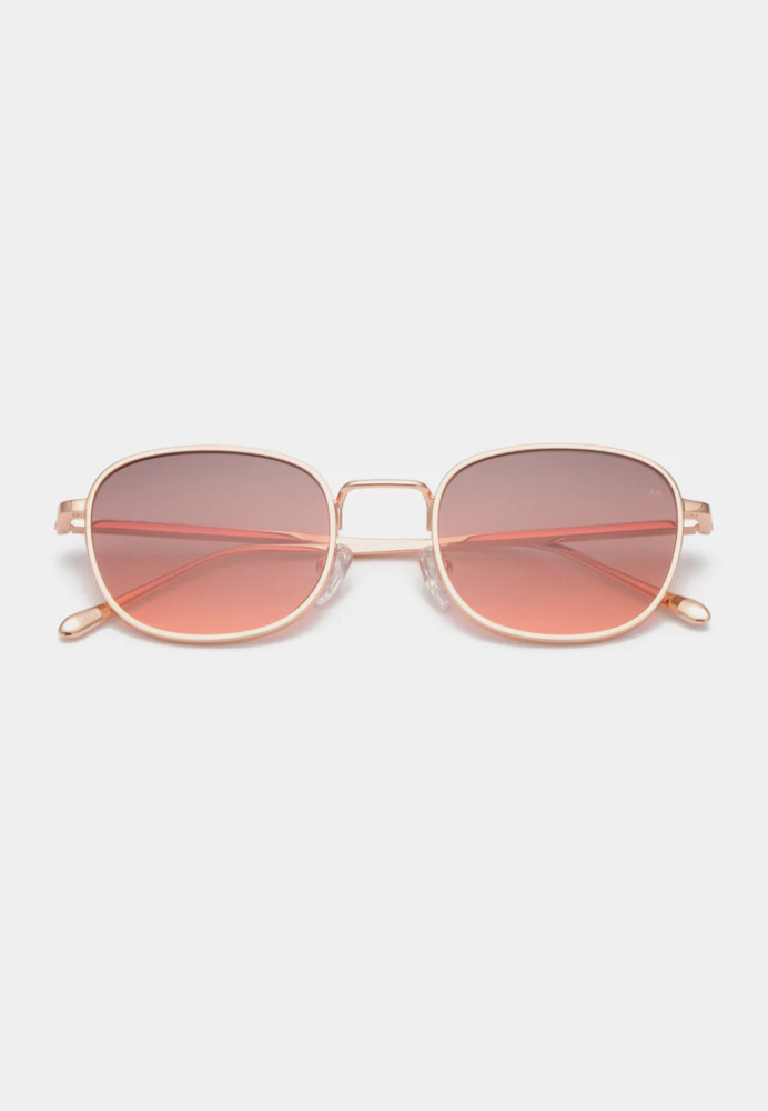 Inspireret af 60'ernes Hollywood med firkantede linser i en slank metalramme, der indrammer ansigtet på en markant, men tidløs måde. Klassisk filmstjerne-look.