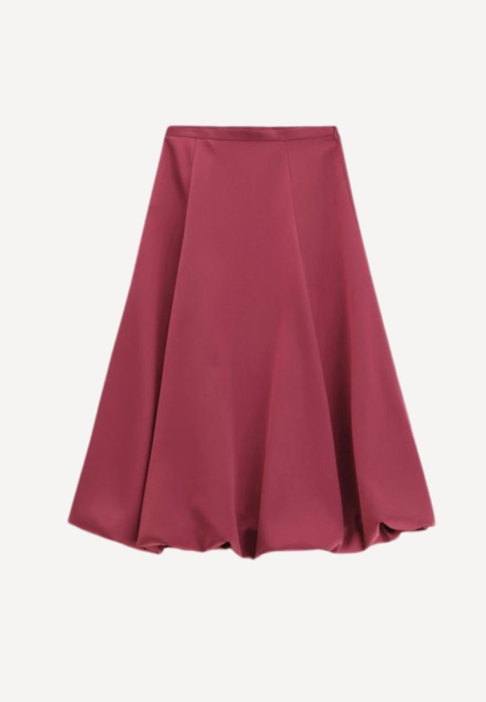 En knælængde nederdel, der indfanger bevægelsens elegance med sine flydende linjer og bløde læg. Skabt til dem, der ønsker at udtrykke deres personlighed, tilbyder denne nederdel en alsidig stil, der passer perfekt til enhver anledning. Tilføj et strejf af raffinement til din hverdagsgarderobe.
