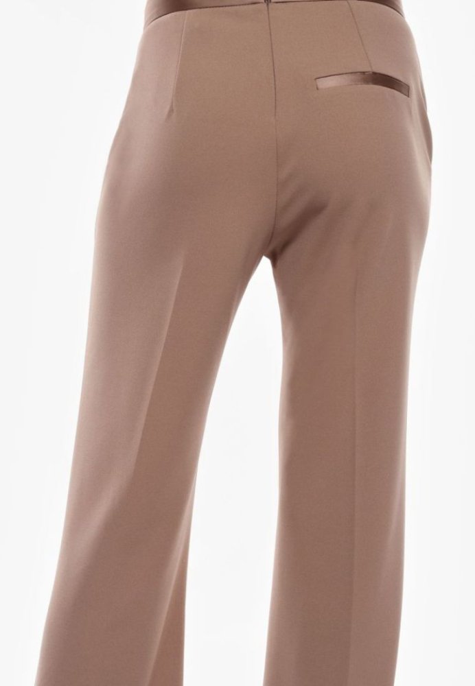 Bukserne har en flatterende høj talje, en glat og stilren linje samt et flot flared snit, der giver bevægelse og et feminint udtryk. De er perfekte både til formelle anledninger og til en stilfuld dag i byen. Et must-have i enhver klassisk og sofistikeret garderobe.