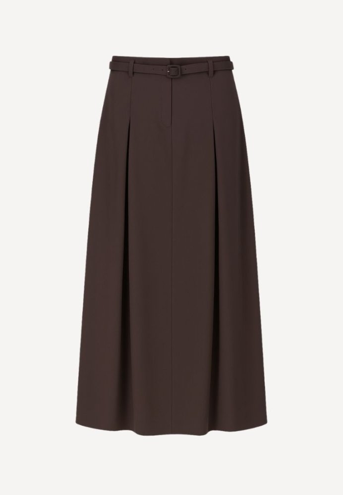 Klassisk brun nederdel i elegant polyesterblanding med let stretch.