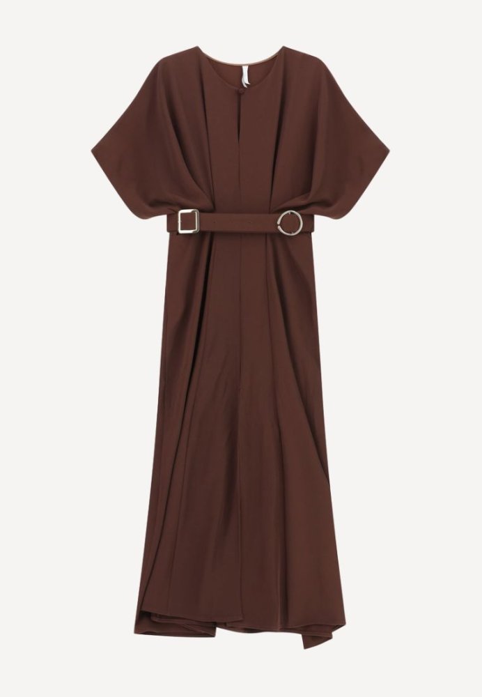 Elegant kjole fra Imperial i mørkebrun. Kjolen er skabt i en blød kvalitet med stretch, som fremhæver en feminin silhuet og giver høj komfort. Perfekt til både hverdag og festlige lejligheder.