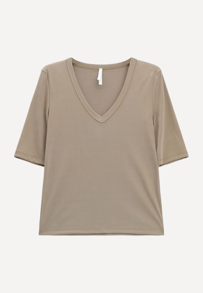 Moderne t-shirt fra Imperial i en blød kvalitet, der giver høj komfort gennem hele dagen. Det enkle design kombineret med en feminin silhuet gør modellen ideel både som basisstyle og som del af et mere sofistikeret outfit. En alsidig style, der let kan styles op eller ned alt efter anledning.