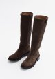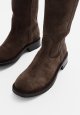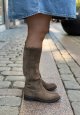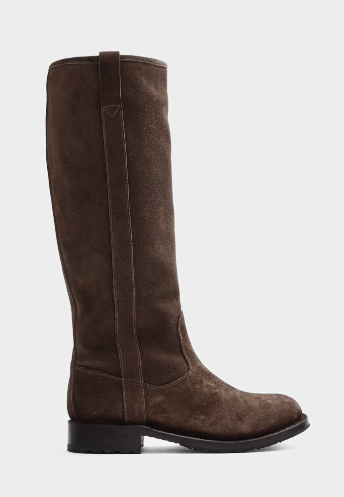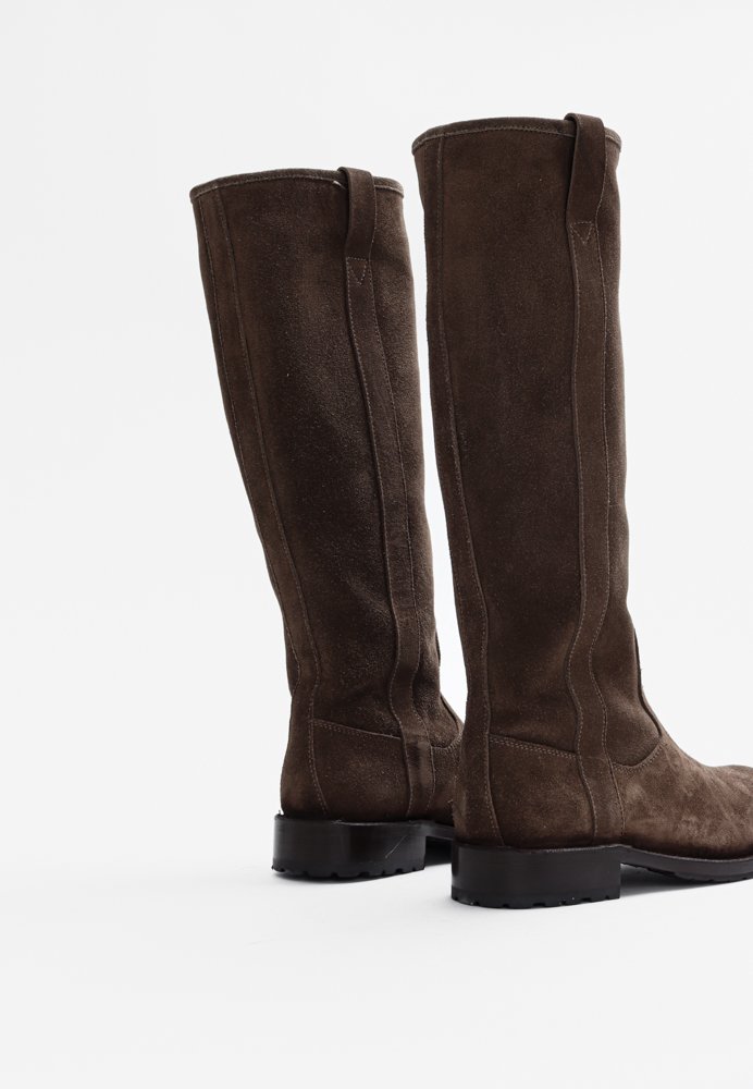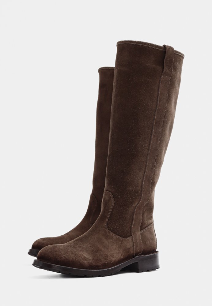 Den lange flade ruskindsstøvle er en elegant og tidløs model i blødt ruskind. Støvlen er pull-on uden lynlås, men det er et et rummeligt fit med en smallere hælkappe der sikrer et godt fit. Den flade sål giver et klassisk udtryk, som er behageligt at gå i hele dagen. Støvlen er nem at style til både kjoler, nederdele og smalle bukser – et musthave til garderoben.