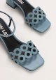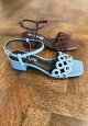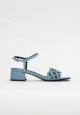 Stilfuld sandal i blå, designet med en flot dekorativ frontdetalje, der giver et moderne og sofistikeret look. Den justerbare rem omkring anklen sørger for god støtte, og den lave hæl giver komfort hele dagen. En alsidig sandal, der passer perfekt til både kjoler, bukser og sommerens events.