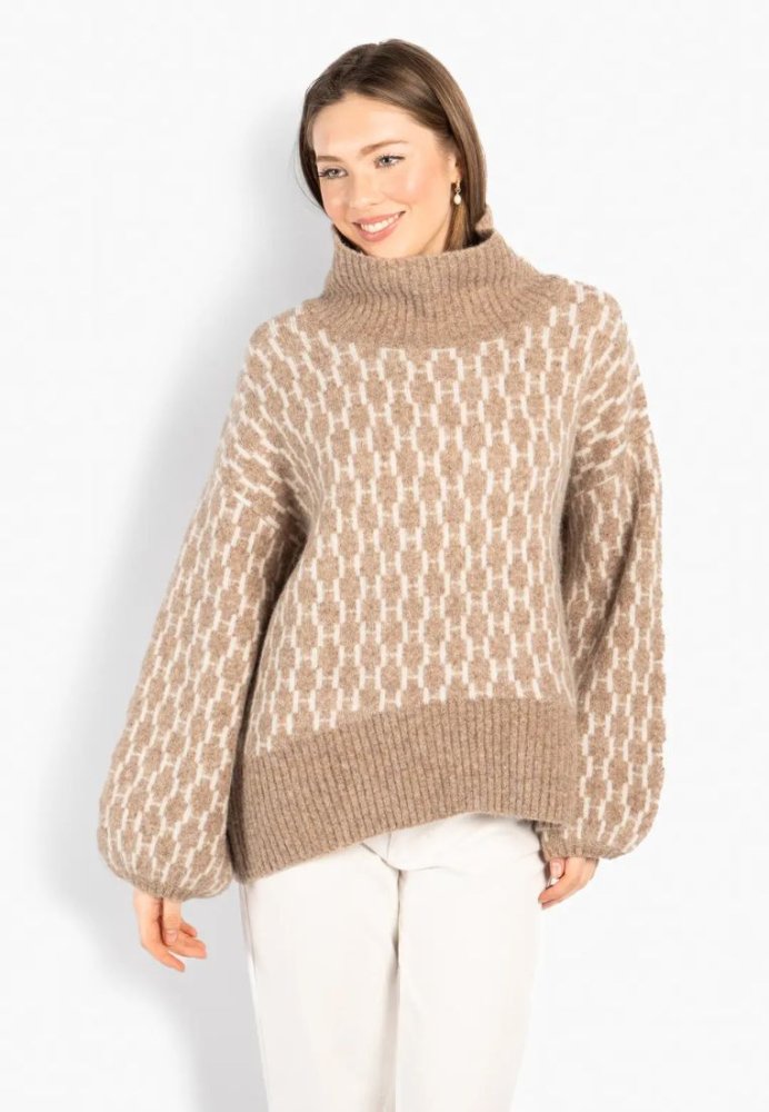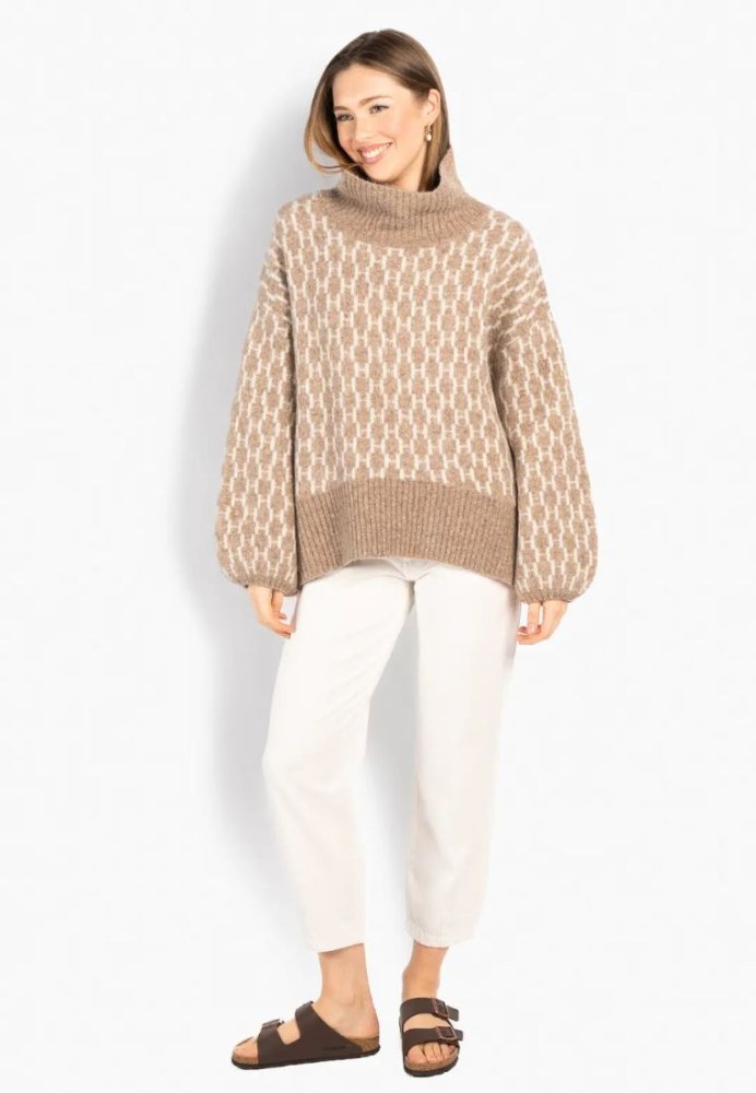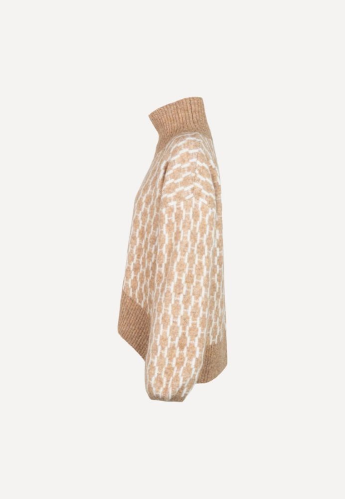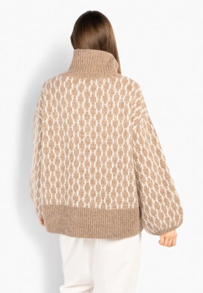 FAM striktrøjen fra Hést er en eksklusiv strik, der kombinerer lethed og luksus i et moderne design. Den bløde blanding af mohair og merinould giver en behagelig varme og en elegant, luftig struktur. Det dekorative mønster og den fine strikkvalitet skaber et sofistikeret udtryk, som gør strikken nem at style både til hverdag og mere afslappede, stilfulde looks. En alsidig favorit med fokus på komfort og æstetik.