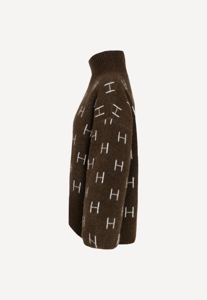 FAM Short Sweater fra Hést i farven Dark Earth er en af mærkets signaturstyles – elsket for sin afslappede pasform og underspillede elegance. Strikken har en blød høj hals, vide ærmer og en let længere ryg, der giver et flatterende og komfortabelt udtryk. Fremstillet i en luksuriøs blanding af merinould, kid mohair og nylon for en let og behagelig følelse.