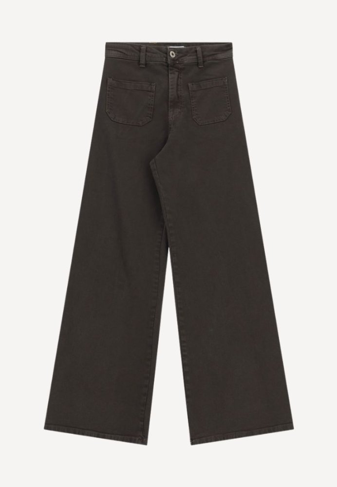Disse stilfulde wide-leg jeans i en skøn brun farve kombinerer klassisk denim med et moderne snit. Den løstsiddende pasform giver både komfort og et afslappet, sofistikeret look, perfekt til hverdagsbrug eller et chic outfit.