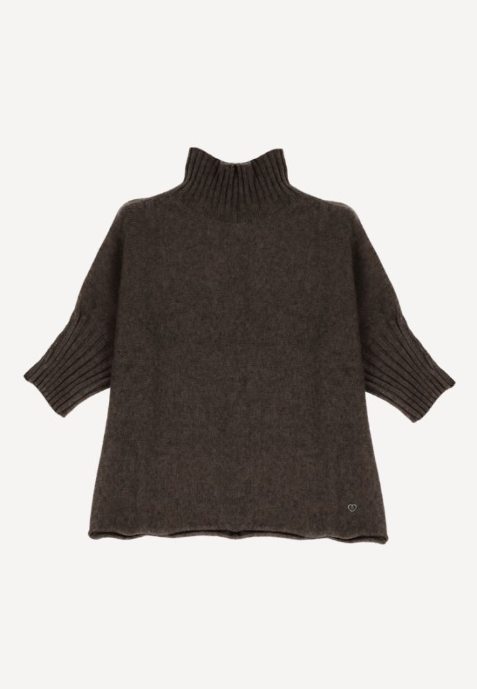 Blød og lun sweat med turtleneck fra Please i en flot brun nuance. Perfekt til de kølige dage, hvor komfort og stil går hånd i hånd. Den høje hals giver ekstra varme og et moderne udtryk, mens det lette strikdesign sikrer bevægelsesfrihed og et afslappet fit.
