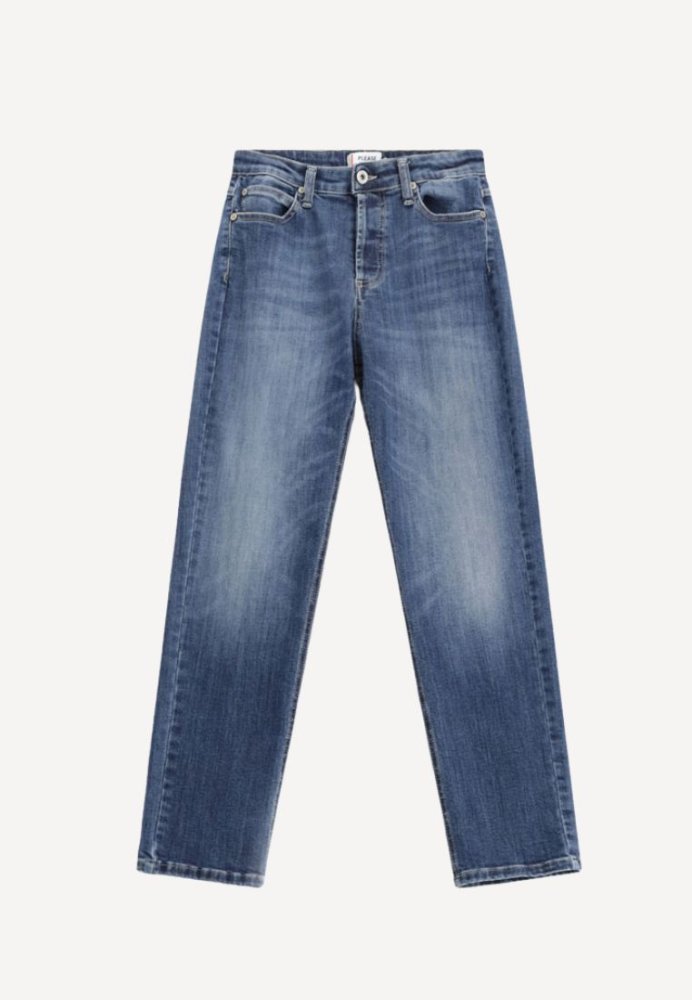 Klassiske girlfriend jeans i blå denim med stræk for komfort og et afslappet, feminint fit.