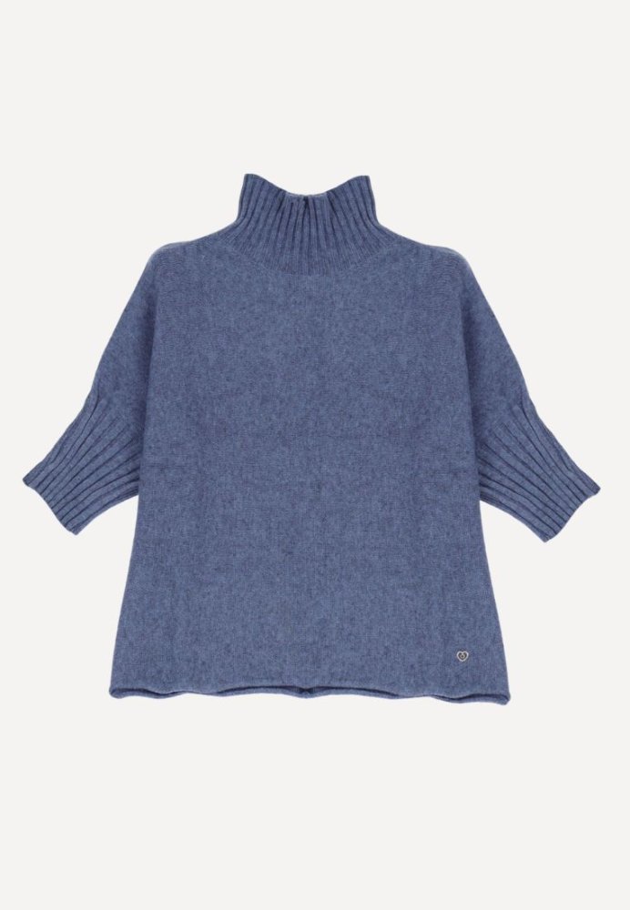 Lækker, blød turtleneck sweat fra Please i en smuk jeans blå en jordnær og stilren tone. Denne model byder på en afslappet pasform med høj hals og en let, strikket struktur. Et perfekt valg til køligere dage, hvor komfort og stil går hånd i hånd.