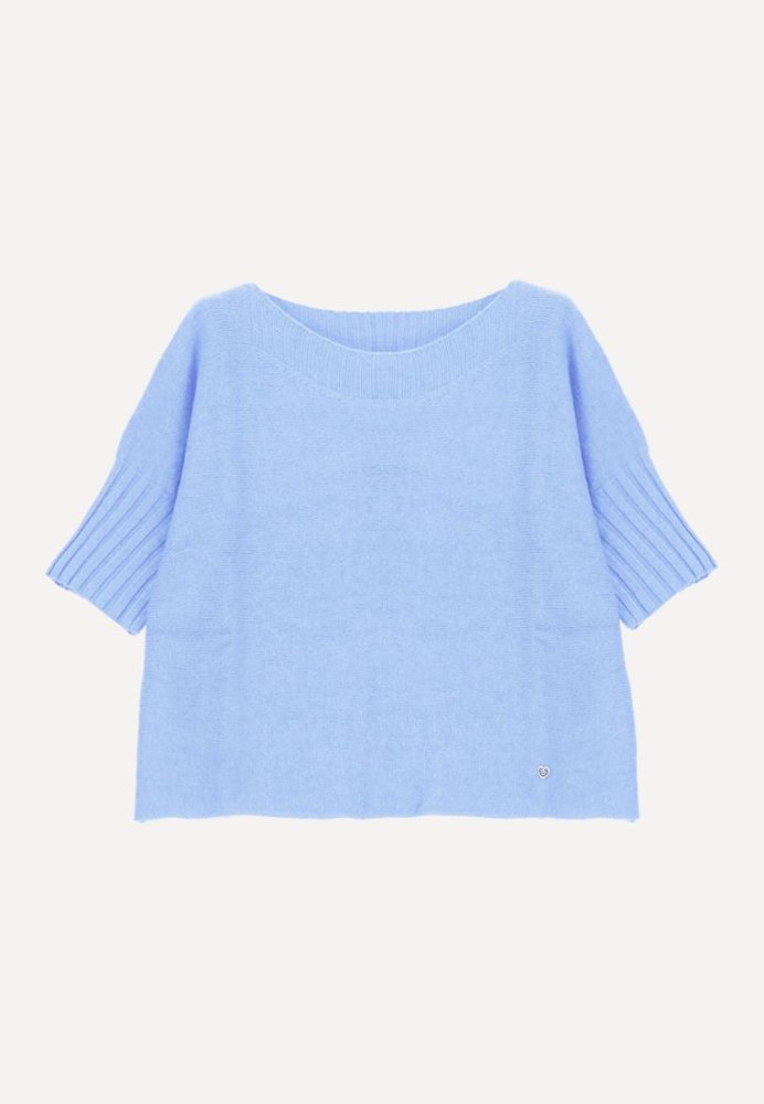 Elegant strikbluse med et feminint og tidløst udtryk. Den er designet med en smuk bådudskæring, som fremhæver hals og skuldre på en sofistikeret måde, mens de korte ærmer med rib giver et moderne og afslappet look. Den lette strikkvalitet sikrer høj komfort, og den løse pasform gør den nem at style til både hverdag og mere stilrene outfits. En alsidig favorit til garderoben.