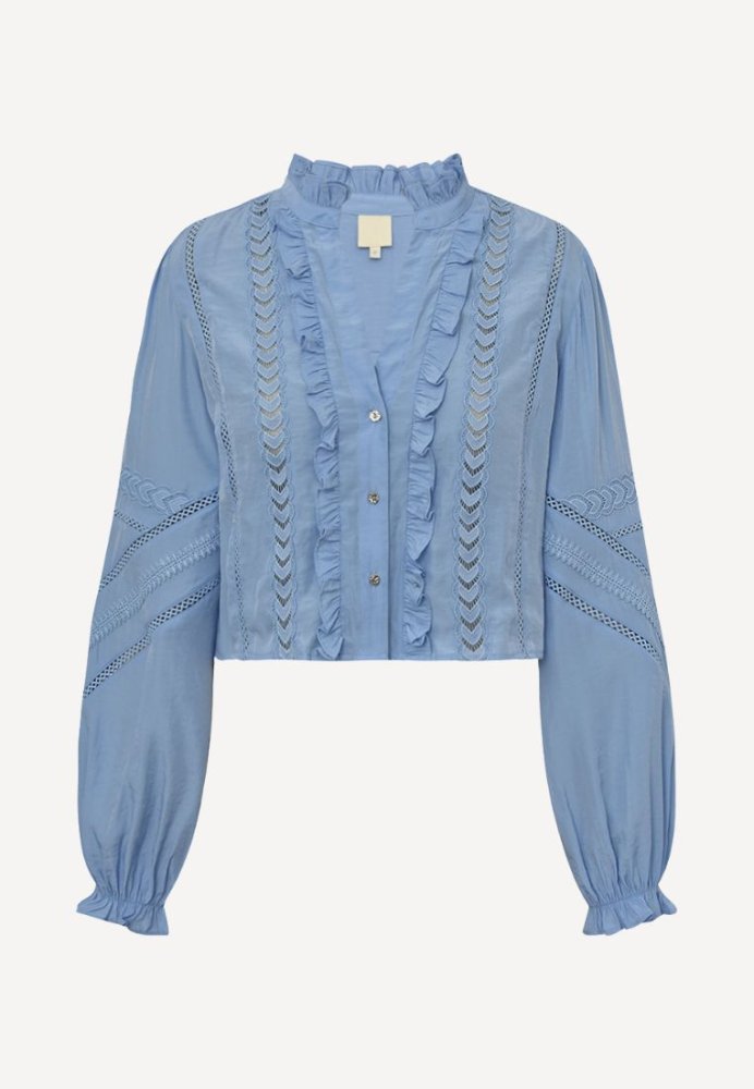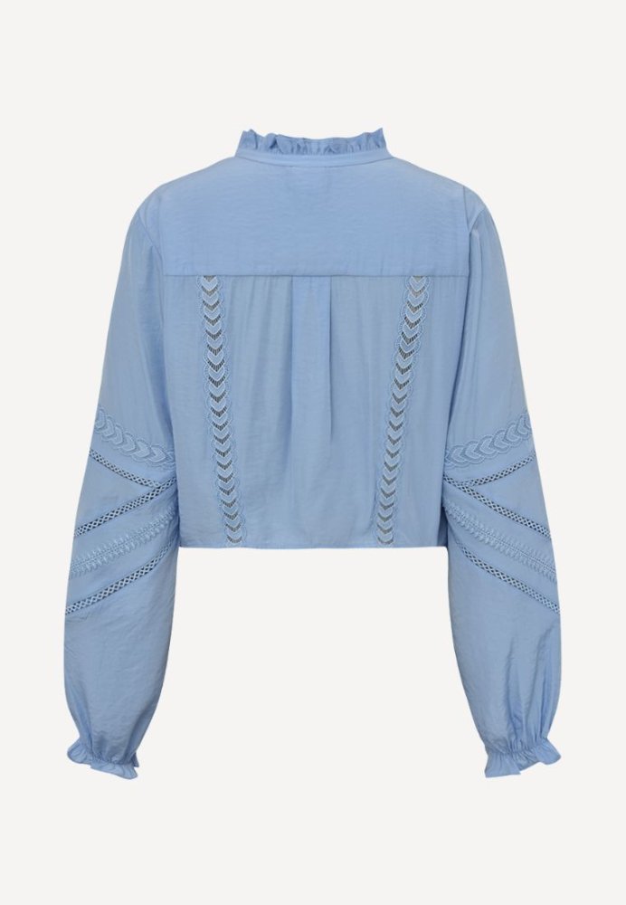 MiekeGO-blusen fra Gossia i den smukke farve Soft Blue er en elegant skjorte med et feminint og moderne udtryk. Den eksklusive sammensætning af polyamid og viskose giver en blød og glat overflade, som falder flot på kroppen. Skjorten har klassisk skjortekrave, gennemgående knapper og en afslappet pasform, der gør den nem at style til både hverdag og kontor. Brug den alene eller style den under en strikvest eller blazer.