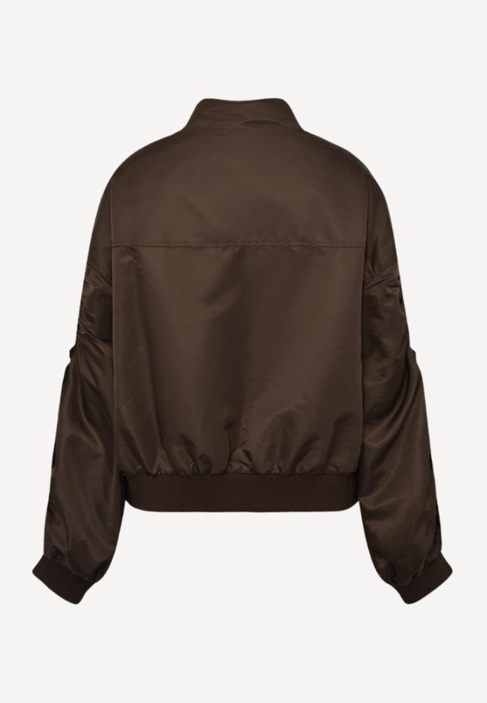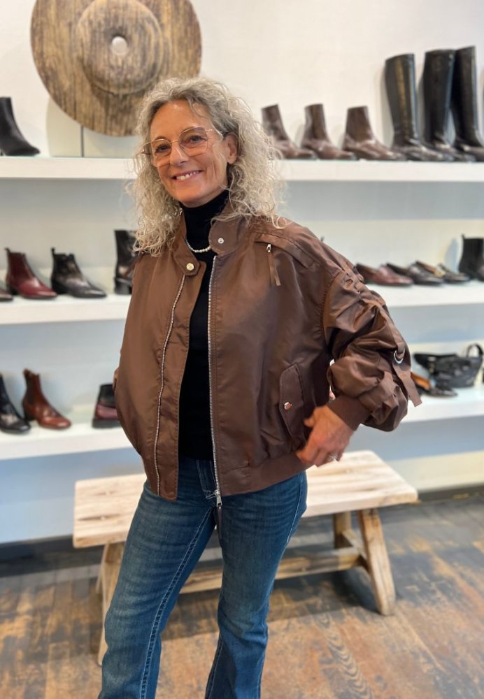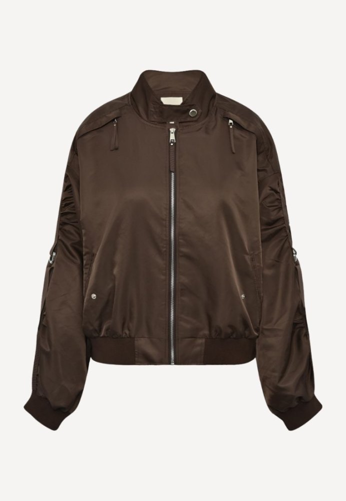 Cool og moderne bomberjakke fra Gossia i farven Caramel Brown. Den klassiske bomber-facon kombineret med ribkanter og let polstring giver jakken et sporty og trendy look – perfekt til både hverdag og overgangssæson.