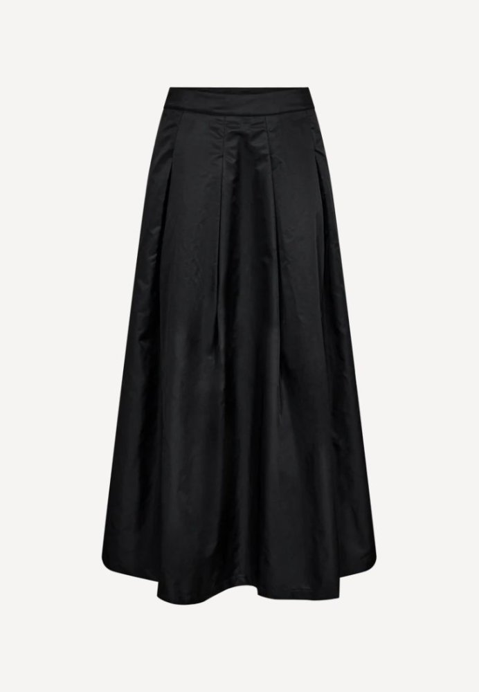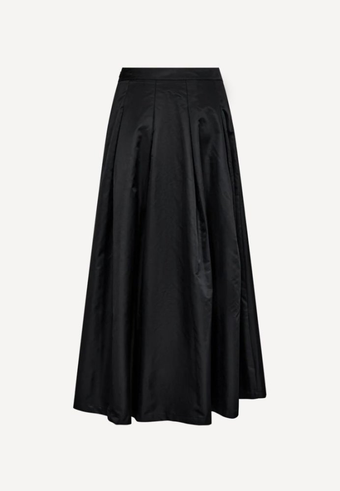 CMSIMI nederdelen er en elegant og eksklusiv style i sort, designet med brede læg og en skjult lynlåslukning i siden. Den klassiske A-facon giver et sofistikeret og tidløst udtryk, som nemt kan styles både til hverdag og fest.