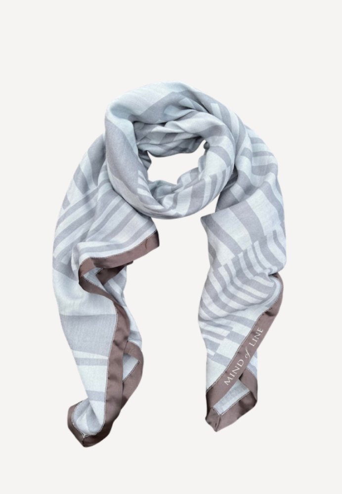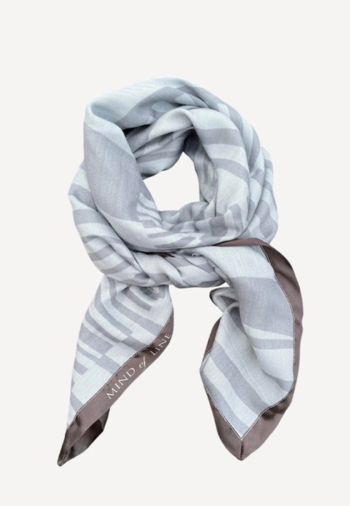 Smukt silke-uldtørklæde fra Mind of Line. Blandingen af silke og uld gør tørklædet både let og lunt på samme tid. Du kan både bruge halstørklædet om halsen, men også over skulderen over en pæn kjole. De blå og brunlige farver gør tørklædet ideelt til foråret.