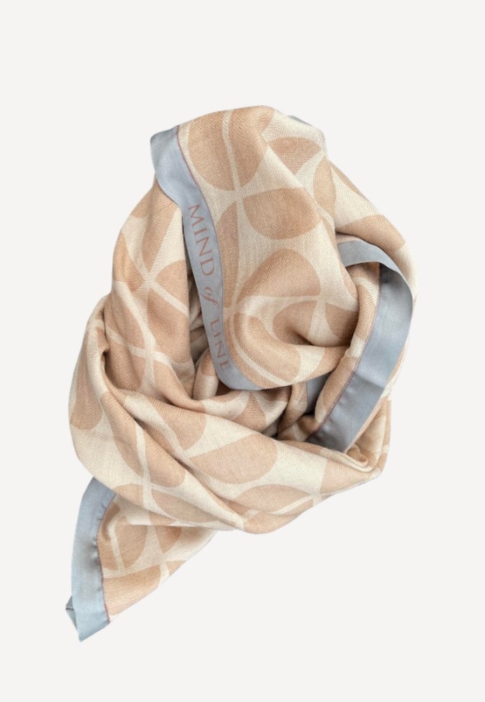 Flot og lyst tørklæde fra Mind of Line. Farverne gør tørklædet perfekt til forårssæsonen. Super skøn kvalitet i et mix af uld og silke, som gør det meget komfortabelt at have om halsen. Silkekanten er i en fin lys farve, som løfter tørklædet og dit outfit.