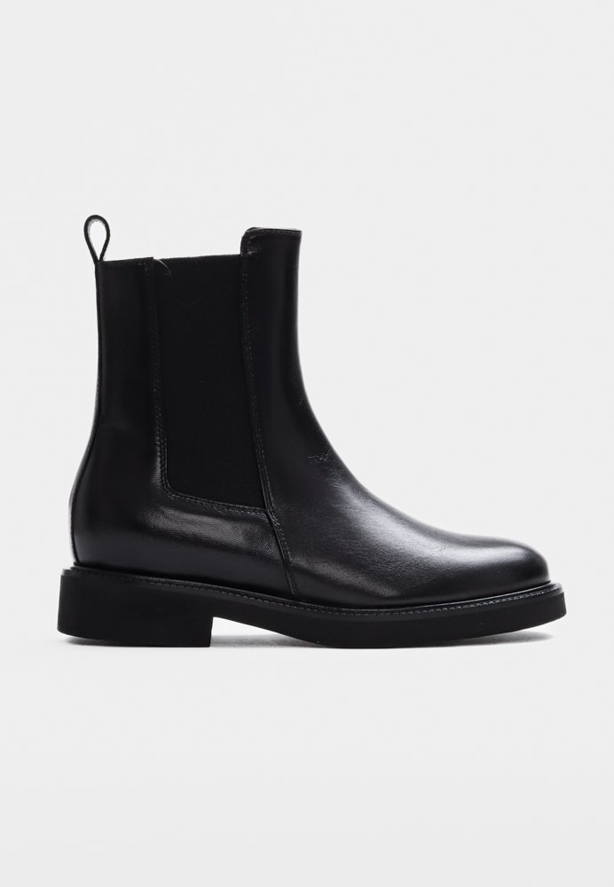 H420T er elegante Chelsea boots i sort, fremstillet i premium læder. Modellen har elastiske paneler i siderne og en diskret hæl, som giver et stilrent og alsidigt udtryk. Designet kombinerer komfort og tidløs stil, hvilket gør støvlerne til et sofistikeret valg i enhver garderobe – perfekte til både hverdag og pænere anledninger.