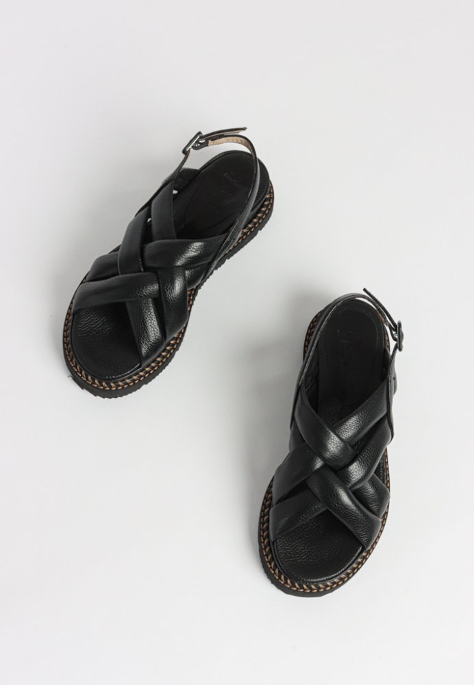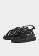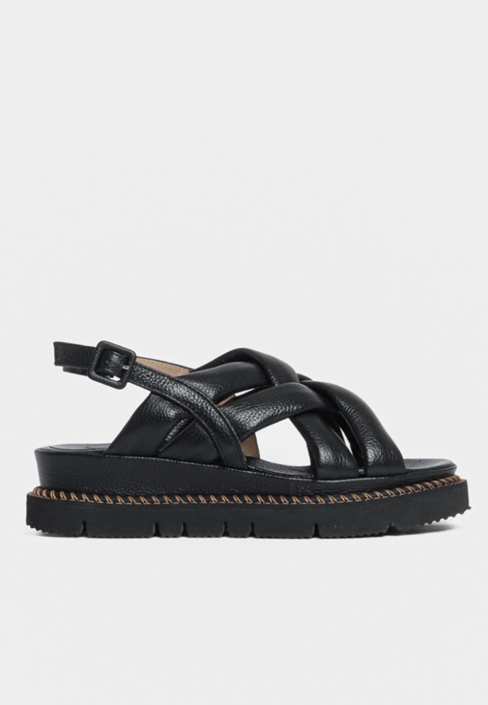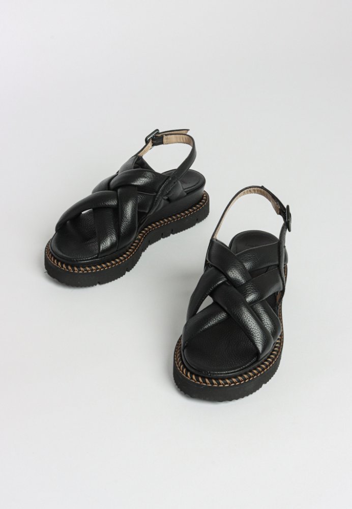 Stilren plateau-sandal med flettede remme, der giver et moderne og sofistikeret udtryk. Den forhøjede sål kombinerer komfort med et elegant løft, mens den justerbare ankelrem sikrer optimal pasform. En alsidig sandal, der tilføjer både attitude og elegance til din garderobe.