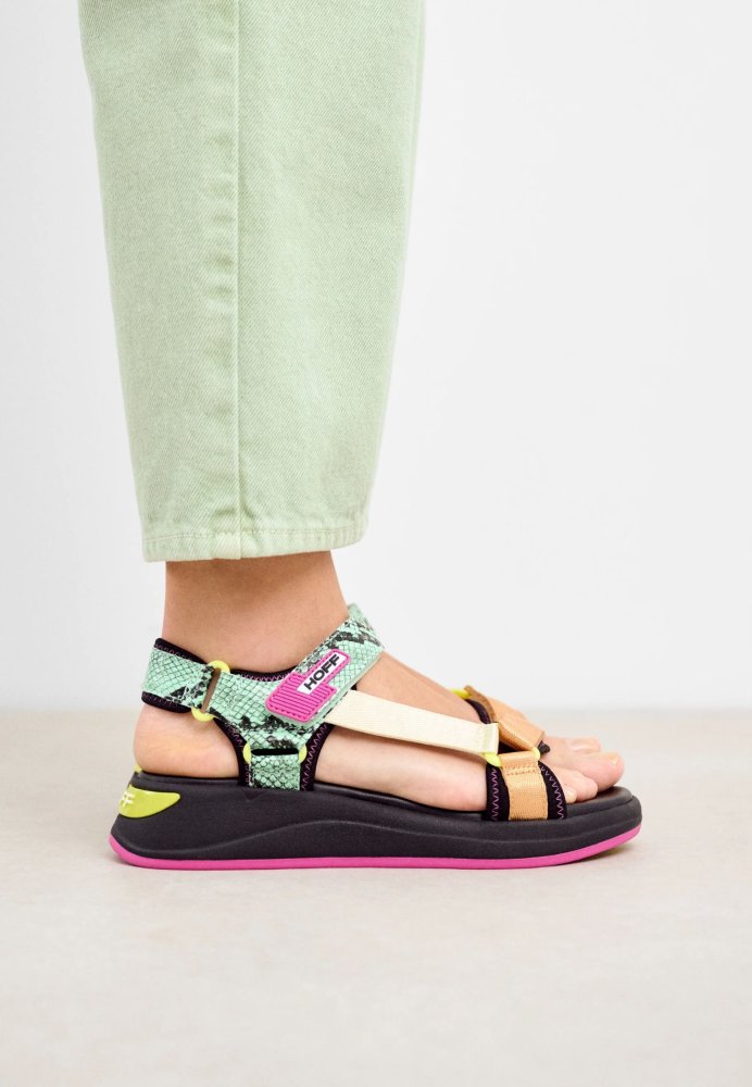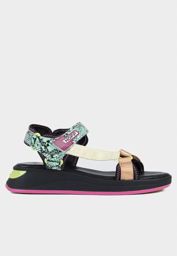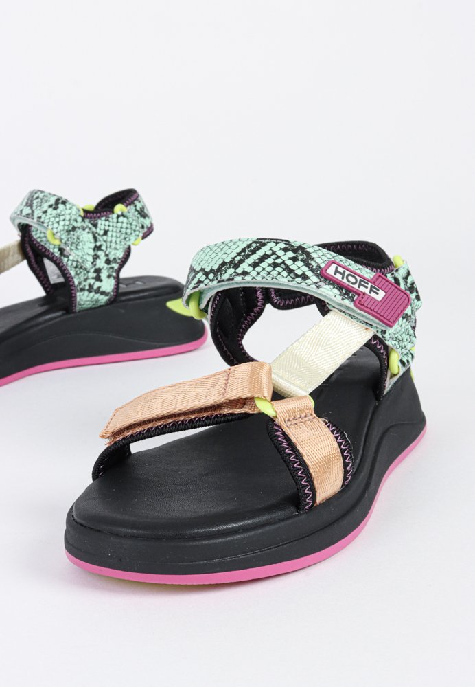 HOFF sandaler designet til solrige dage. Med et grønt slangeprint, HOFF kombinerer ruskind, syntetiske materialer og tekstil i et stilfuldt multi-rem design. Den bløde memory foam-indersål og polstrede foring sikrer komfort hele dagen.