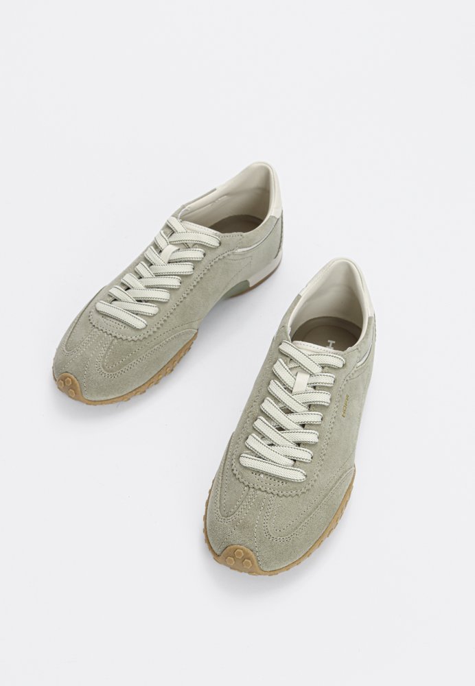 Minimalistisk og sofistikeret sneaker i blødt ruskind med et eksklusivt udtryk. Den slanke silhuet kombineret med diskrete detaljer gør modellen nem at style til både casual og mere elegante looks. En komfortabel hverdagssneaker med tidløst design.