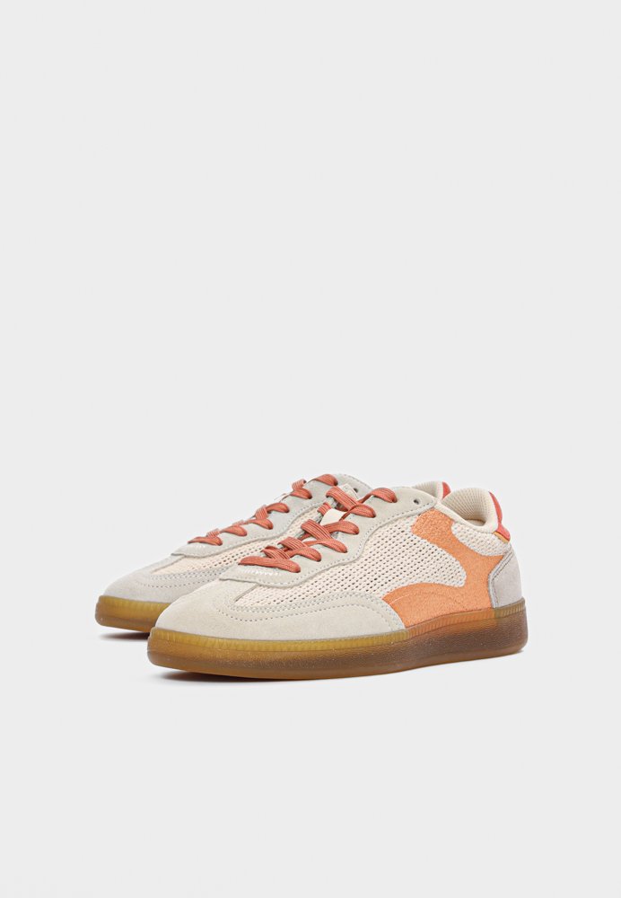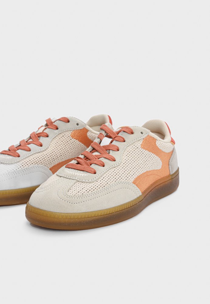Let og moderne sneaker med hælket detaljer, der giver et sporty og dynamisk udtryk. Kontrastdetaljerne tilfører kant til designet, mens den fleksible sål sikrer komfort hele dagen. Et oplagt valg til en aktiv og stilbevidst hverdag.