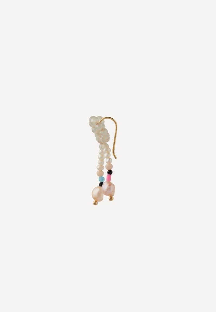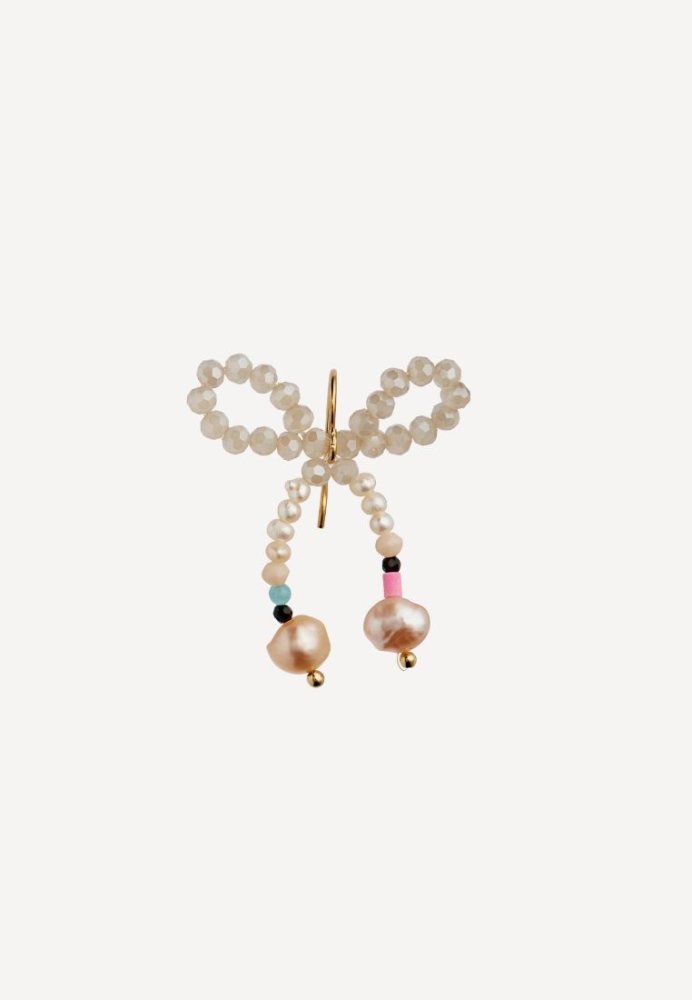 Super smuk perleørering, der er formet som en sløjfe, fra danske Stine A. Øreringen har fine hvide og lyserøde ferskvandspersoner.
