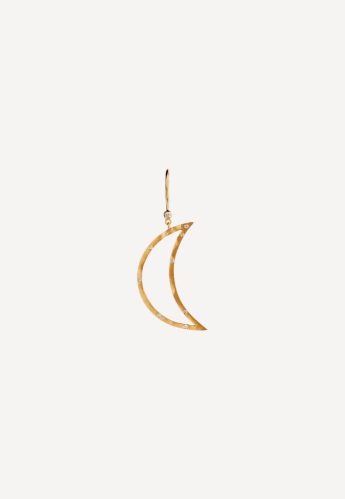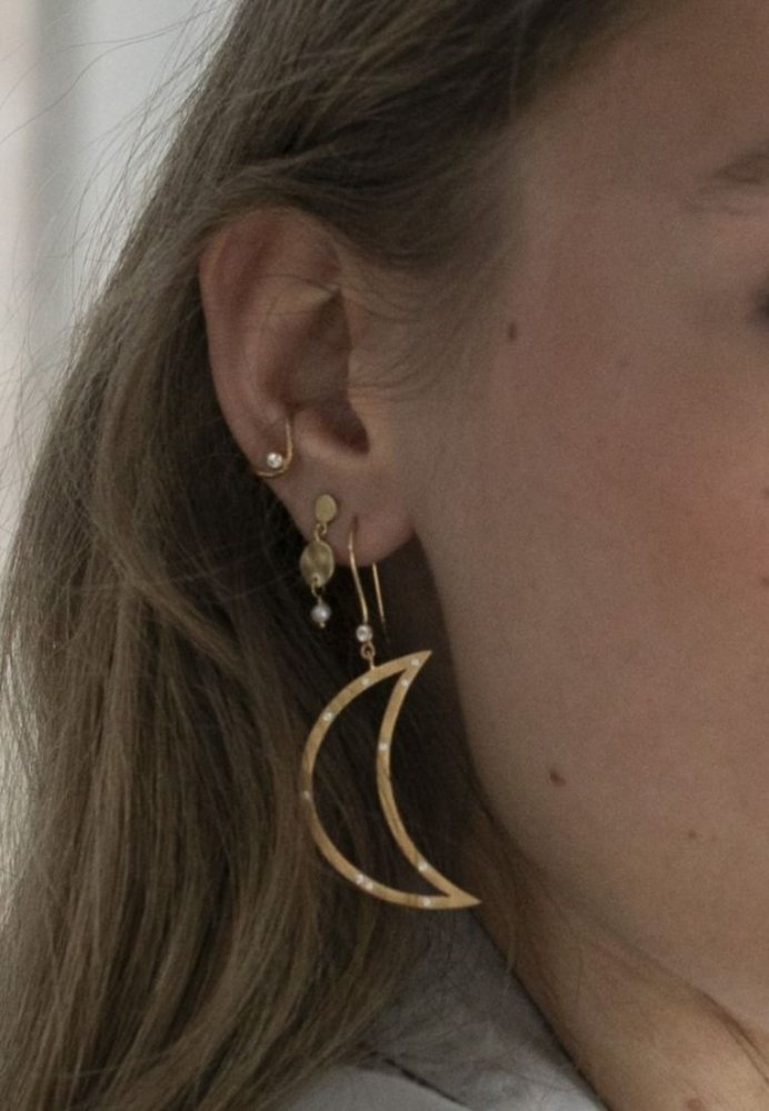 Flot og elegant måneørering, som har en smuk ujævn overflade, der leget med lyset. Derudover har den en række fine små hvide zirkoner.