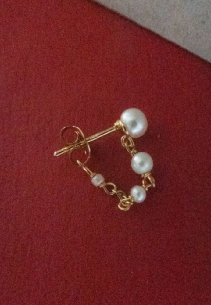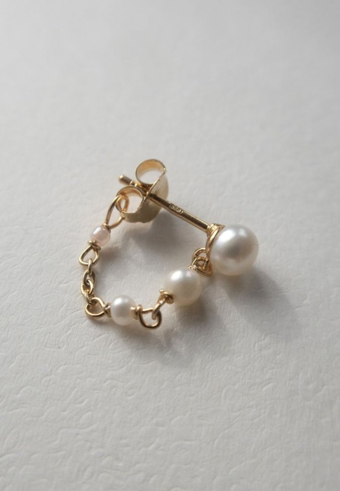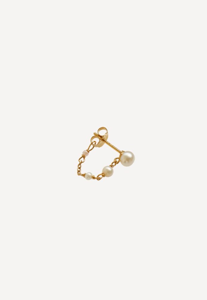 Elegant, fin ørering i 18 karat forgyldt 925 sterlingsølv med fine ferskvandsperler på kæde. Øreringen er cirka 0,8 cm bred med en 2,4 cm lang kæde, og består af to ørestik i ét design – perfekt til mix & match. Enkel, stilfuld og tager dit look til et nyt niveau.