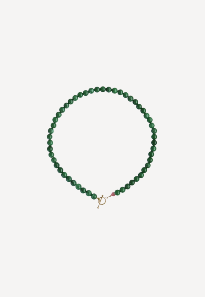 Et farverigt og legende halskæde med grønne bon bon-perler. Justerbar længde og nikkelfri kvalitet. Perfekt til at tilføje et frisk pust til ethvert outfit.