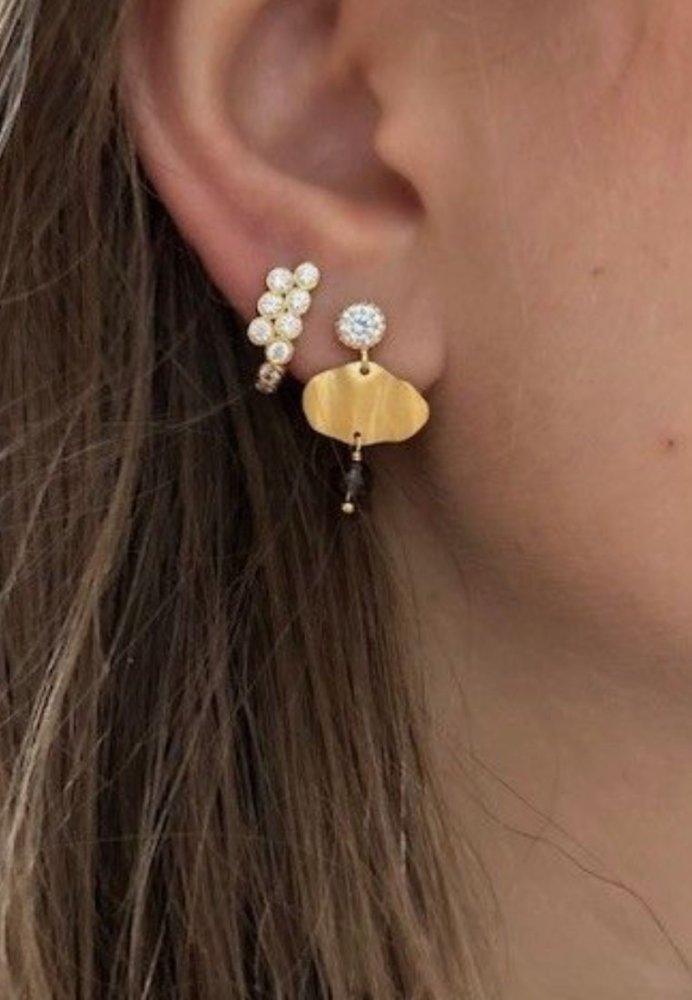 Forgyldt sterlingsølv ørering med rækker af hvide, funklende ædelsten. Designet er let og enkelt, men elegant og de mange ædelsten tilføjer en eksklusiv detalje til det enkle design. Den perfekte ørering til dig, der elsker en luksuriøs æstetik. Med denne ørering kan du tilføje glans og elegance til din hverdag eller en særlig lejlighed.