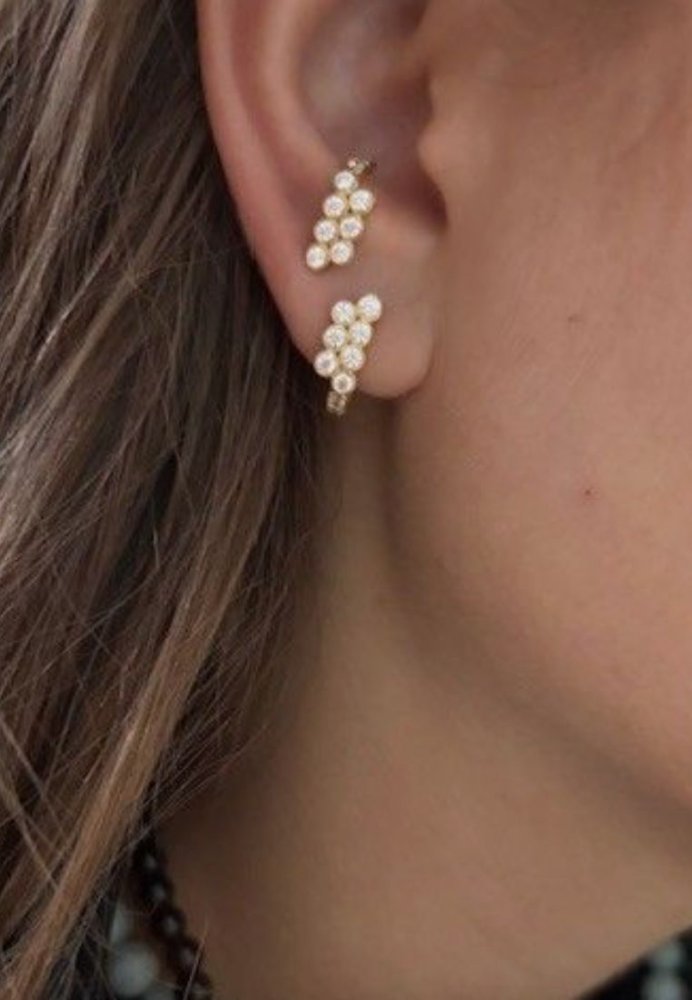 Forgyldt sterlingsølv ørering med rækker af hvide, funklende ædelsten. Designet er let og enkelt, men elegant og de mange ædelsten tilføjer en eksklusiv detalje til det enkle design.