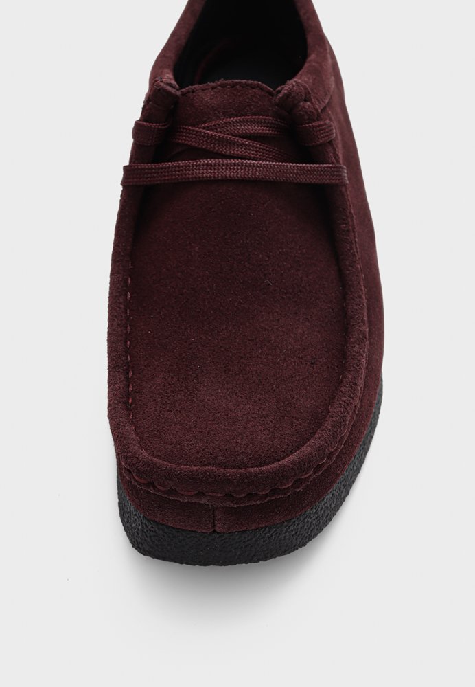 Wallabee EVO Sh D fra Clarks er en moderne version af den ikoniske Wallabee-model – opdateret med en let og fleksibel gummisål for øget komfort. Denne udgave i dyb merlotfarvet ruskind tilfører varme og kant til garderoben. Den karakteristiske silhuet med synlige stikninger, snørelukning og rund snude gør skoen tidløs, mens materialevalget og sålen sikrer en let og behagelig oplevelse dagen igennem.