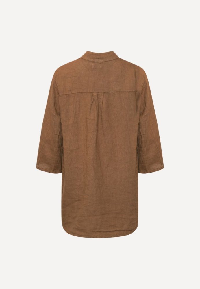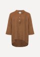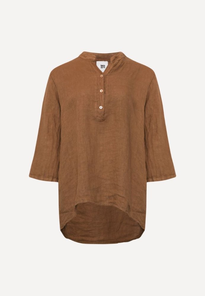 Denne smukke hørbluse fra Tiffany er fremstillet i 100% let og åndbart hør. Den har et tidløst snit med 3/4-ærmer, knaplukning og en elegant, længere bagkant, som giver et flot fald. Perfekt til både hverdag og sommerdage. Findes også i farverne army og mocca.