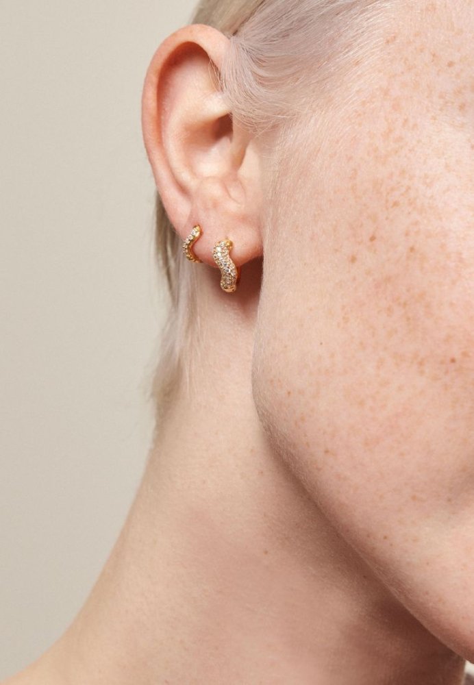 Sparkling Curve er smukke hoops i en dynamisk, kurvet form med hvide CZ-sten. Sparkling Curve hoops fås i både en lille og en stor version, hvilket gør dem perfekte til at blive båret sammen i samme øre. De er fantastiske til en festoutfit, men passer også perfekt sammen med fine, hverdagssmykker.