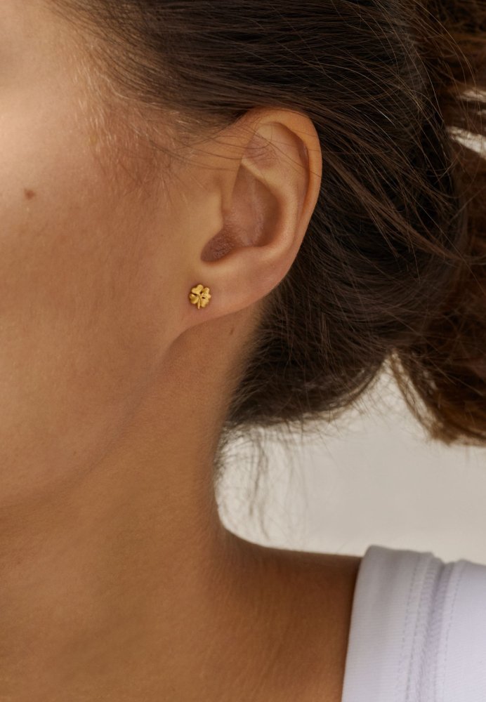 Organiske og fine kløver-ørestikker med elegante detaljer. Ørestikkerne er fremstillet i 925 sterlingsølv og belagt med 18 karat guld. De er meget små i størrelsen, hvilket gør dem til en diskret, men meningsfuld detalje. Firkløveren er et gammelt symbol på held og siges at bringe lykke til bæreren. Vores kløver-ørestikker i guld er til dem, der værdsætter symbolik og smykker med sentimental betydning – perfekte som gave eller som en personlig amulet.