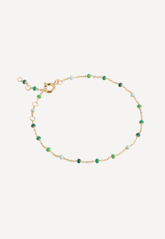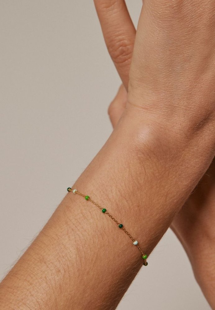 Lola Bracelet fra ENAMEL Copenhagen er et feminint armbånd med små farvede emaljedetaljer, der giver et elegant og levende udtryk. Den fine kæde skaber en let og stilfuld detalje på håndleddet og er perfekt både alene eller i kombination med andre armbånd for et personligt look. Den grønne farve tilfører et friskt og moderne touch til smykkesamlingen.