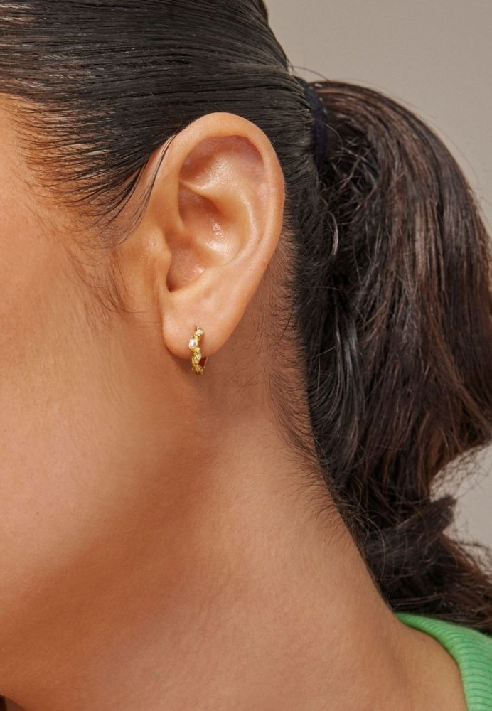 Laia Hoops fra ENAMEL Copenhagen er små og feminine hoops med fine, farverige detaljer i klare og pastelfarvede nuancer. De diskrete CZ-sten i clear, light pink og light apple green giver et legende og elegant udtryk, som tilfører personlighed til dit look. Perfekte alene for et let farvet touch eller kombineret med mere enkle hoops og studs for et unikt og moderne ear stack.