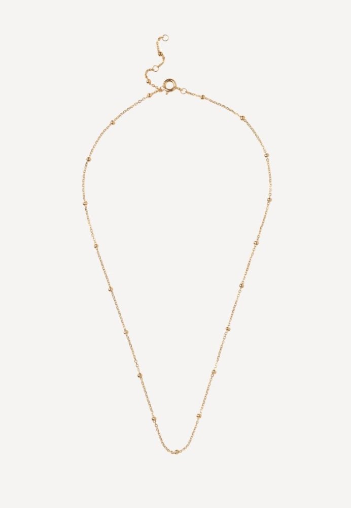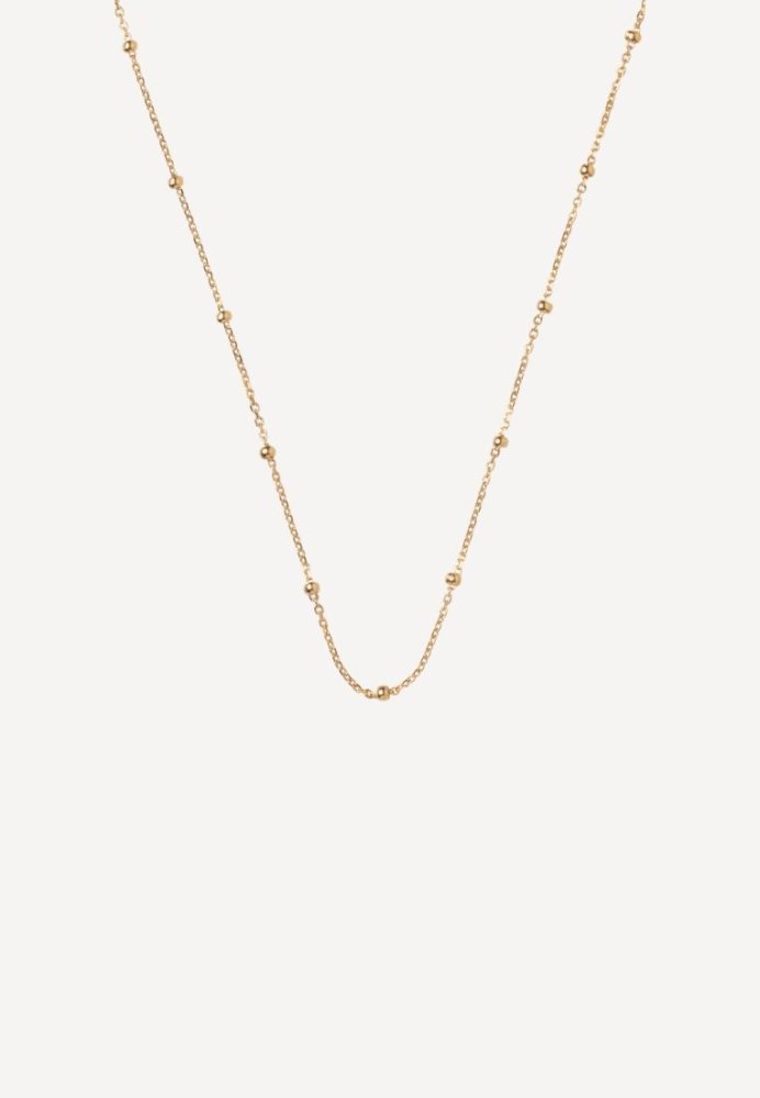 Beaded Chain Necklace fra ENAMEL Copenhagen er en elegant halskæde med små guldfarvede kugler, der skaber et let og sofistikeret udtryk. Det enkle design gør den til en alsidig favorit til hverdagsbrug, smuk alene og perfekt i kombination med andre kæder for et personligt layered look. De små beads tilfører en diskret detalje, som giver kæden sit karakteristiske udtryk.