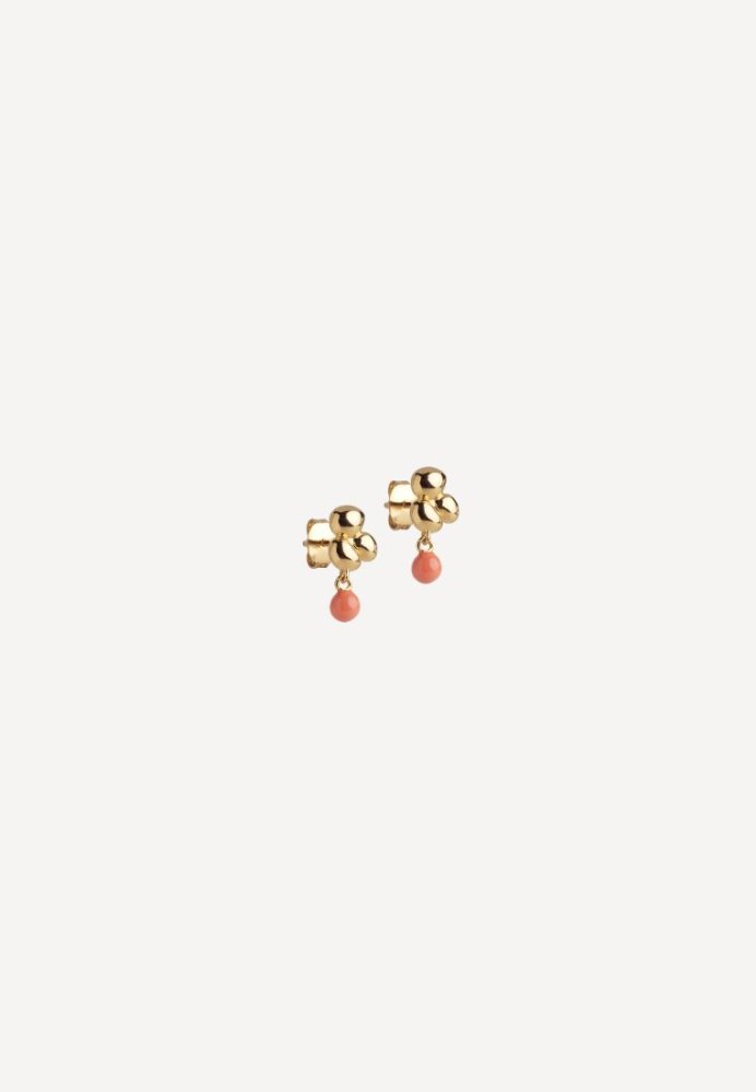 Nara Ball øreringen forener bløde, organiske guldelementer med en rund, farvet detalje, der tilfører designet liv og personlighed. Kontrasten mellem de naturlige former og det grafiske udtryk skaber et moderne og kunstnerisk look med kant.Øreringen udstråler både lethed og karakter og er perfekt til at give dine hverdagsoutfits et stilfuldt løft. Et smykke, der balancerer det elegante og det legende ? og som nemt bliver et iøjnefaldende element i din smykkesamling.