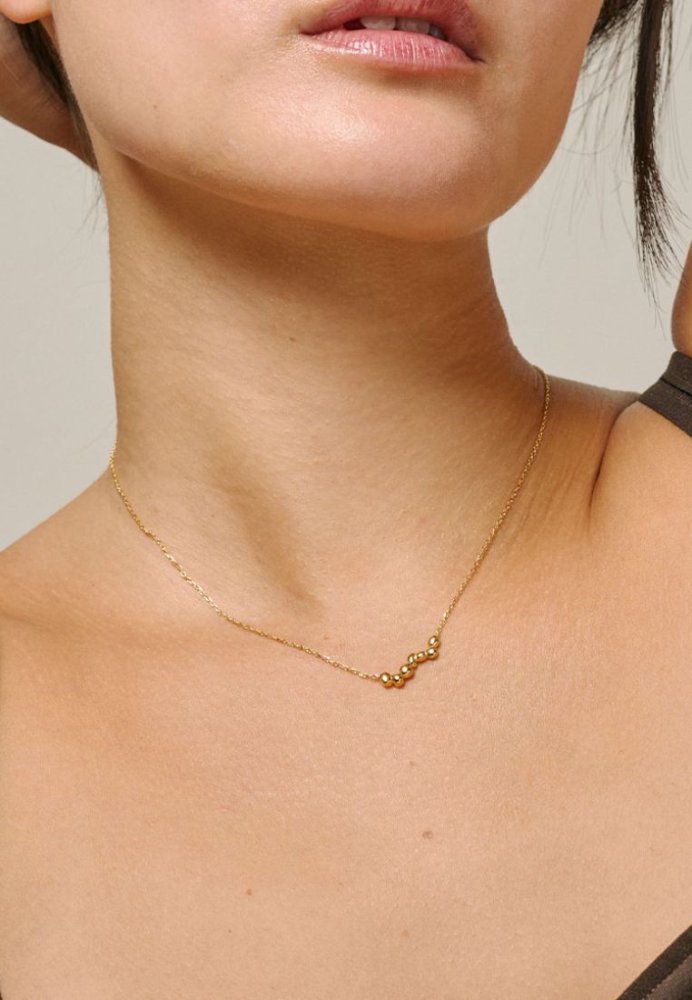 Nara halskæden har et markant og organisk udtryk med sit unikke vedhæng i forgyldt sølv. De bløde former bevæger sig i en flydende linje og skaber en levende rytme, inspireret af naturens kræfter, hvilket giver smykket et skulpturelt og moderne præg.Vedhænget falder smukt på brystet og fungerer som et naturligt blikfang uden at virke tungt. Designet balancerer rå styrke og sofistikeret elegance, hvilket gør halskæden til et oplagt valg både til hverdag og til mere gennemførte looks. Et tidløst smykke med karakter, der nemt bliver en fast del af din smykkegarderobe.