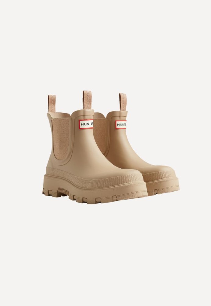 Unisex Elements Elastic Chelsea Boot fra Hunter kombinerer klassisk design med funktionelle detaljer og komfort til hverdagsbrug. Fremstillet i slidstærkt gummi med elastiske sidepaneler, der gør støvlen nem at tage af og på. Den minimalistiske silhuet giver et tidløst udtryk, samtidig med at modellen er praktisk til både byliv og skiftende vejrforhold.