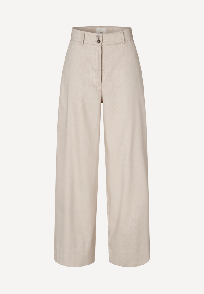 LauraFV 769 er designet med en høj talje og vide ben, der skaber et elegant og tidløst udtryk. De paspolerede lommer med knapper giver en skræddersyet finish, der tilføjer et stilrent touch. Perfekte til både hverdag og mere formelle anledninger. Designet i København og fremstillet af specialister i Tyrkiet.