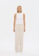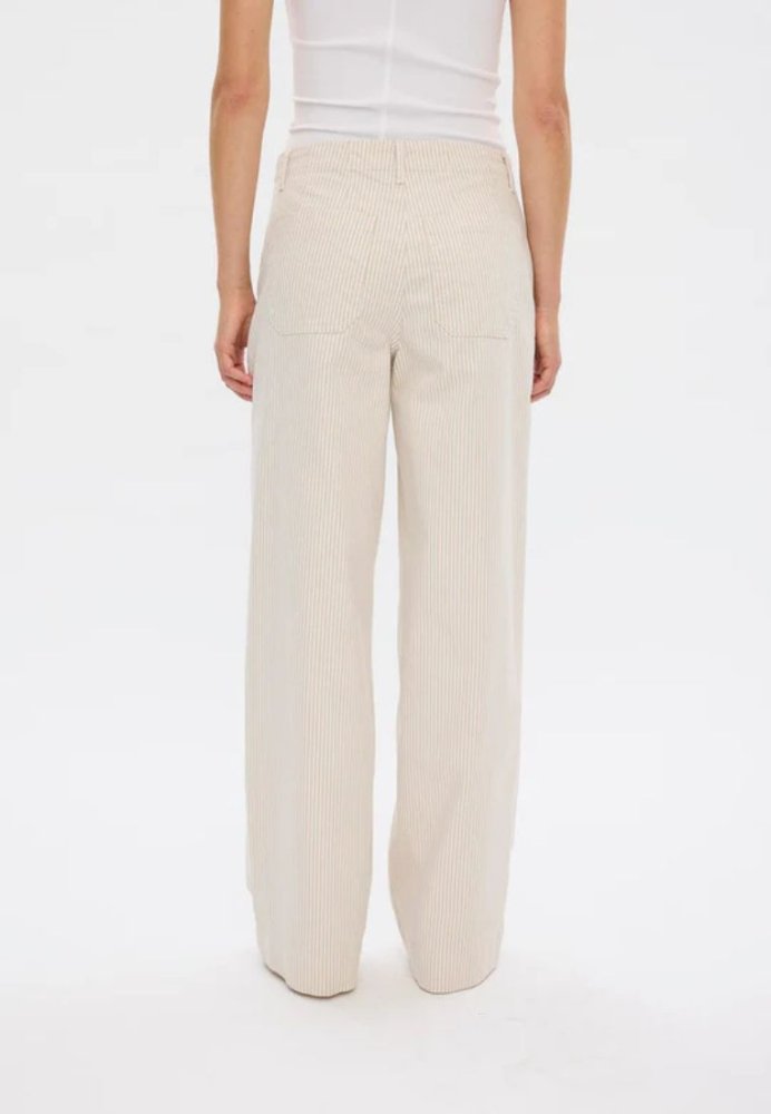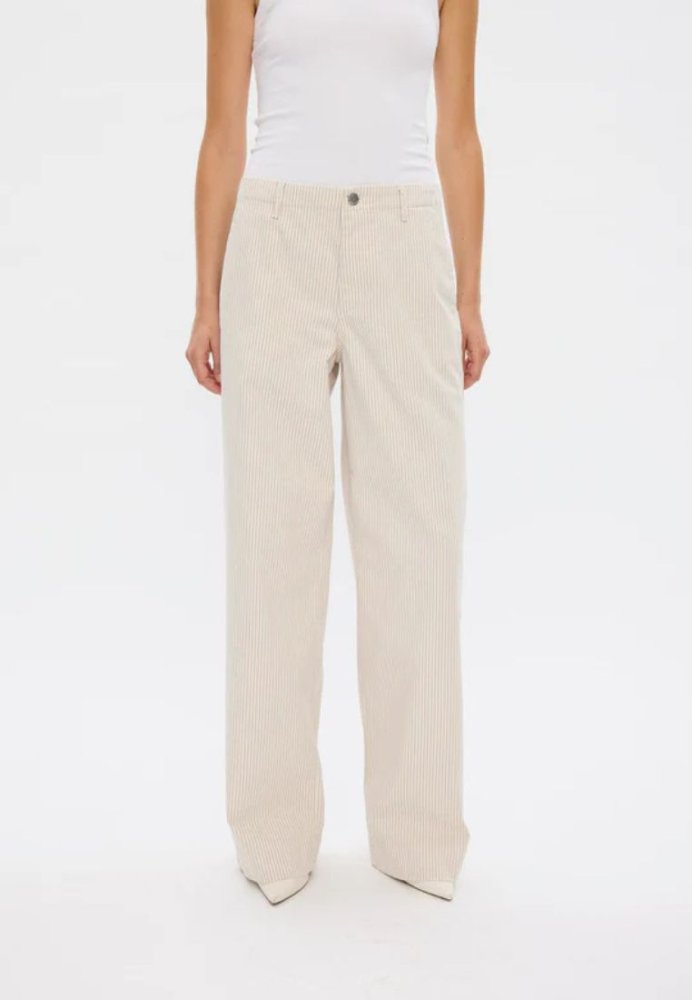 Erica har et afslappet og rent udtryk og er designet med en forhøjet linning med bæltestropper samt lynlåslukning og knap. Bukserne er skåret i en lige, wide-leg silhuet, der giver et moderne look, mens diskrete stikninger og påsyede baglommer tilfører fine, gennemarbejdede detaljer.