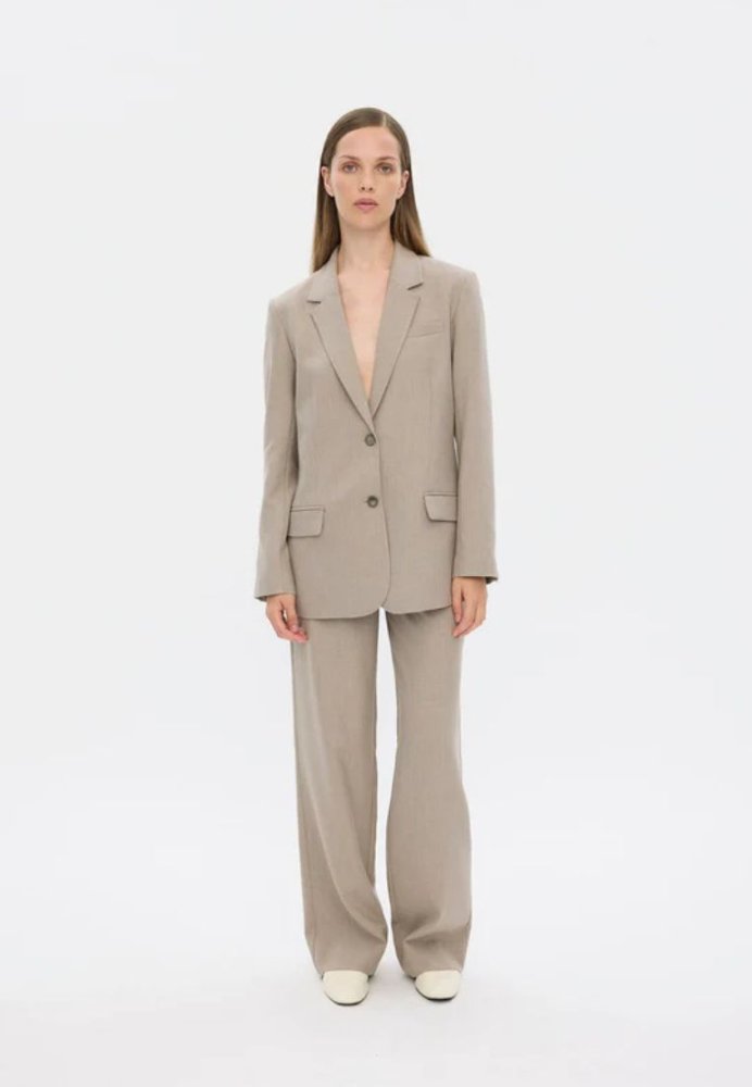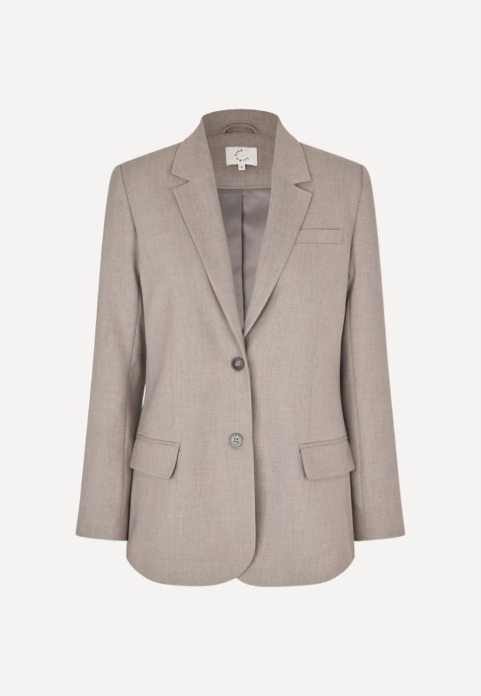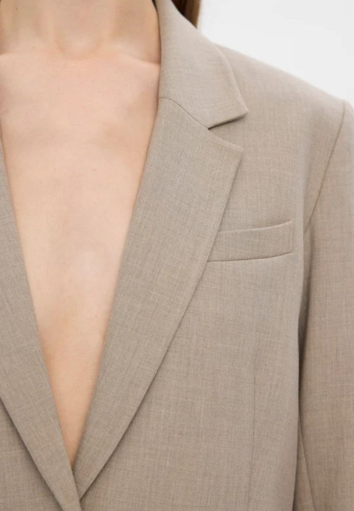 HannahFV er designet i en straight fit-silhuet med enkel lukning og et elegant, skulpturelt udtryk. Blazeren er holdt i et minimalistisk design med diskrete logoknapper, klassisk revers, brystlomme og frontlommer med klap. Indsnit langs siderne former silhuetten, mens lette skulderpuder skaber struktur. En slids bagpå giver ekstra bevægelsesfrihed og komfort.