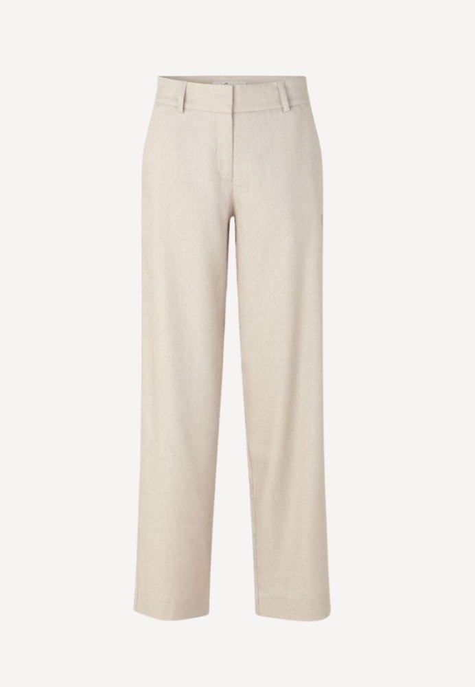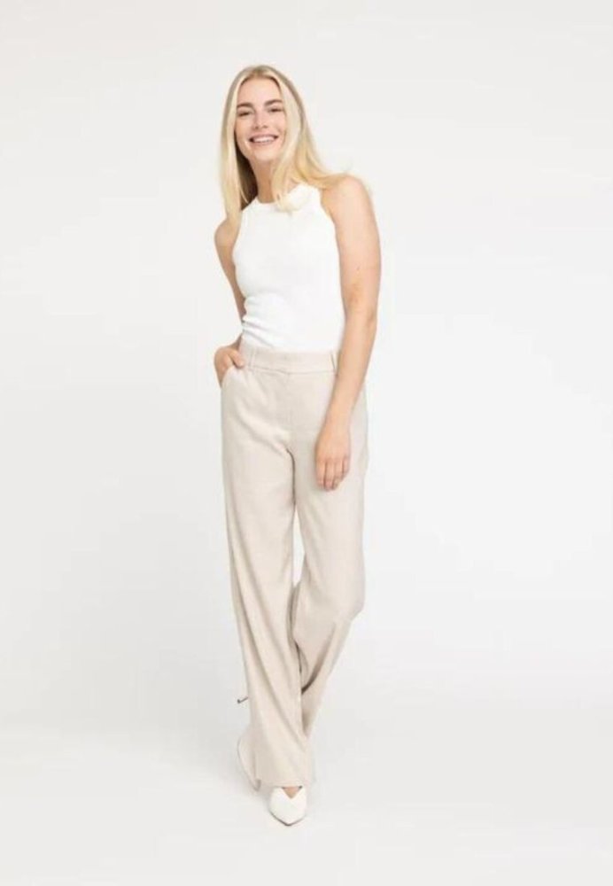DenaFV 769 er designet med en høj talje og vide ben, der skaber et elegant og tidløst udtryk. De paspolerede lommer med knapper giver en skræddersyet finish, der tilføjer et stilrent touch. Perfekte til både hverdag og mere formelle anledninger.