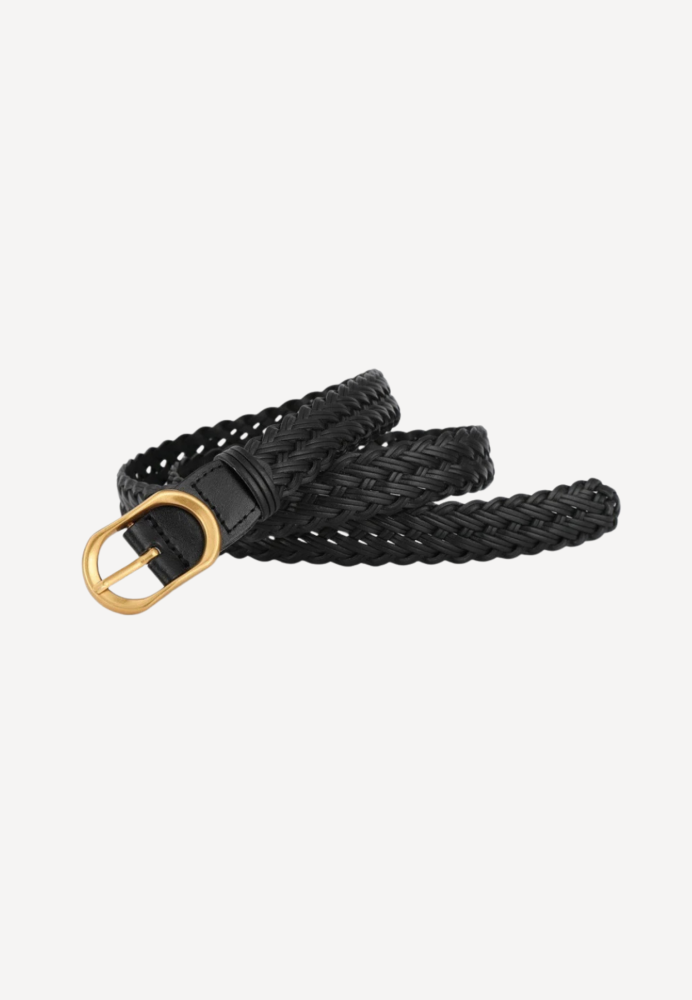 Smukt flettet bælte på 105 cm med elegant ovalt messingspænde.