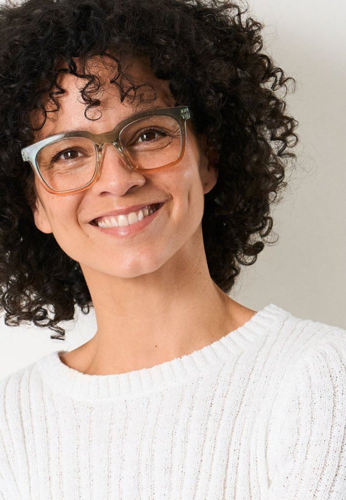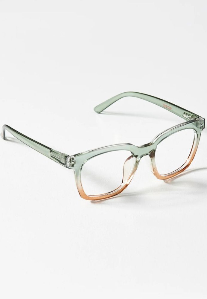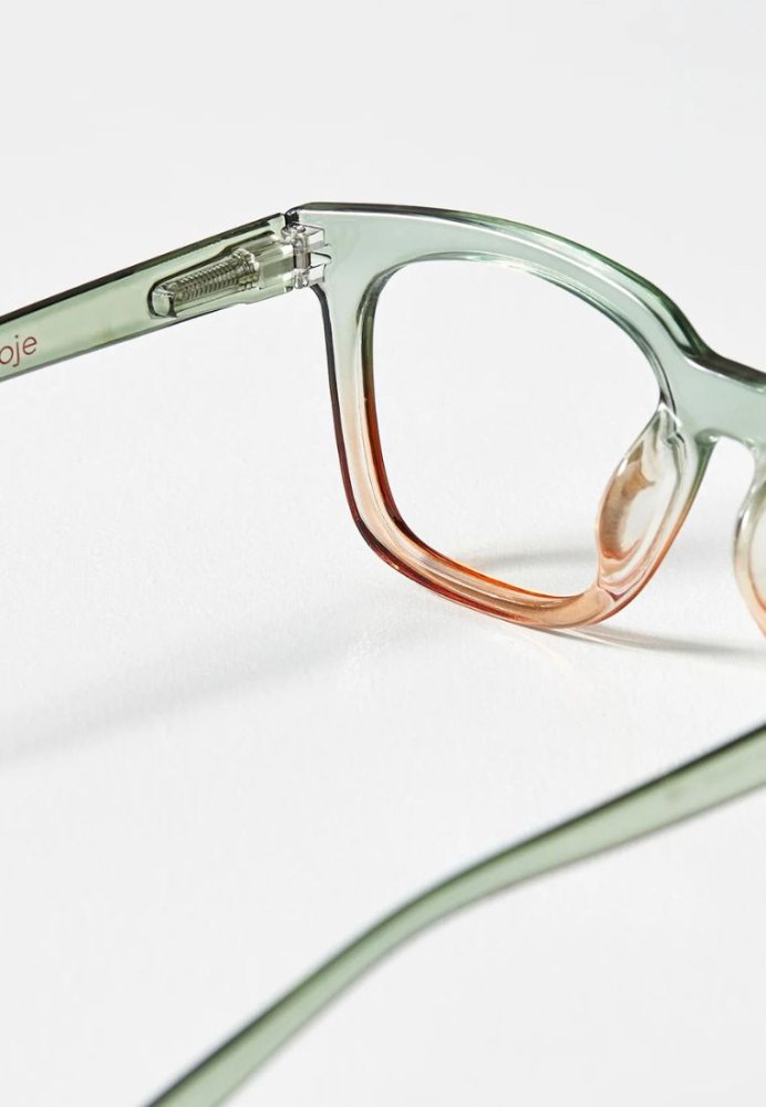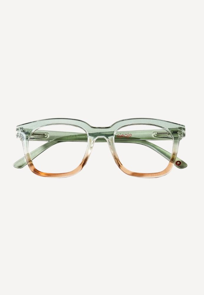 Læsebrillen "D" fra OyeOye er en grøn/sand, stilfuld og bæredygtig læsebrille med komfortabel pasform.