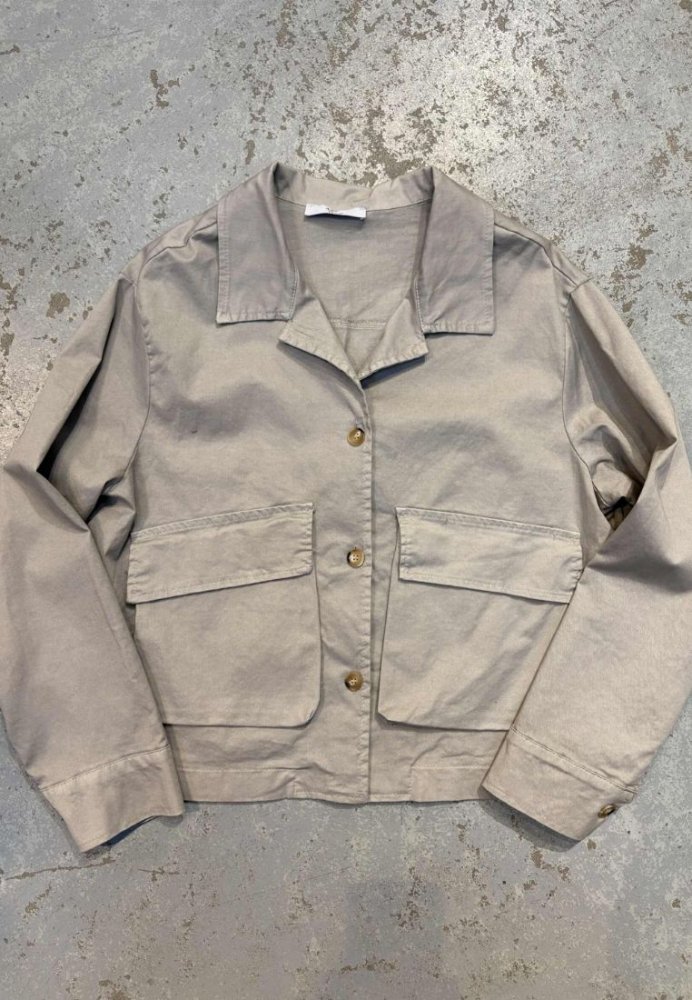 Stilren jakke med et afslappet og moderne udtryk. Jakken er designet med klassisk krave, knaplukning foran og to store frontlommer, som giver et cool utility-inspireret look. Den korte længde og den lette kvalitet gør den perfekt som overgangsjakke eller som et ekstra lag over dit outfit.