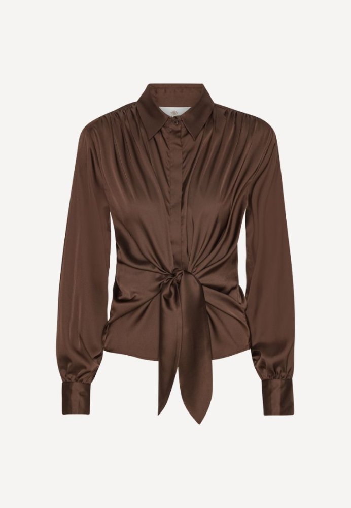 Lee-blusen kombinerer klassisk elegance med et moderne twist. Skjorten har et smukt bindebånd foran, der fremhæver taljen, samt lange ærmer, en klassisk krave og knaplukning både foran og ved manchetterne. Kan nemt styles op eller ned alt efter anledningen.