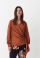 Ines-blusen udstråler både feminin styrke og stil. Den draperede halsudskæring falder blødt omkring kroppen, mens et satinbånd i taljen fremhæver dine kurver. Blusen har lange ærmer, der afsluttes med brede manchetter for et sofistikeret og klassisk look.